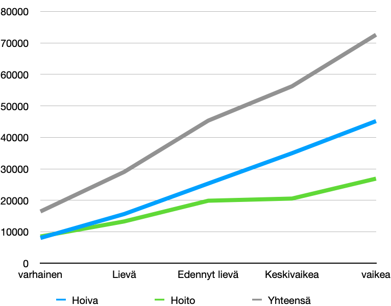 Jetsonen V, Kuvaja-Köllner V, Välimäki T, Selander T, Martikainen J, Koivisto AM. Total cost of care increases significantly from early to mild Alzheimer’s disease: 5-year ALSOVA follow-up. Age Ageing. 2021 Nov 10;50(6):2116-2122. doi: 10.1093/ageing/afab144. PMID: 34255025; PMCID: PMC8581391.